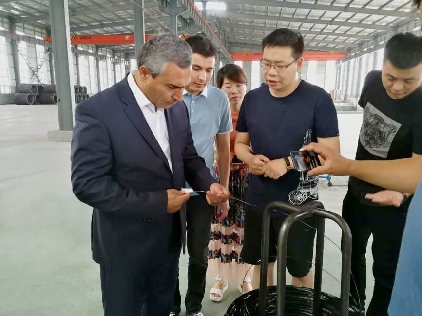 7月14日下午,烏茲別克斯坦KOKAND CITY州長 Usmonov Maruf蒞臨青龍劍釘業(yè)經(jīng)濟(jì)開發(fā)區(qū)公司。青龍劍釘業(yè)總經(jīng)理馬群澤熱情接待了到訪的Usmonov Maruf先生及隨行人員,并陪同Usmonov Maruf先生到車間進(jìn)行參觀考察。