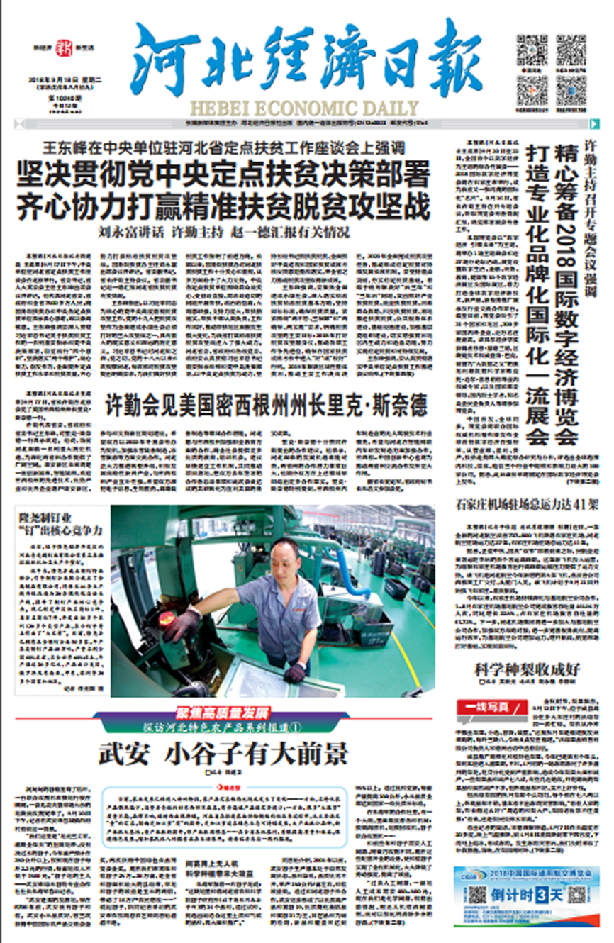 河北經(jīng)濟(jì)日報9.18日頭版要聞