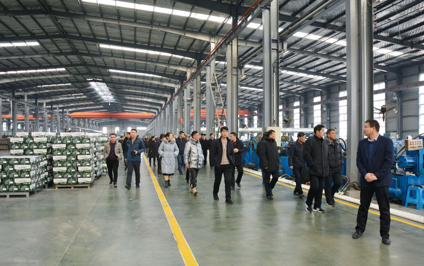 會后,總經(jīng)理馬群澤同供應(yīng)商參觀開發(fā)區(qū)公司車間。