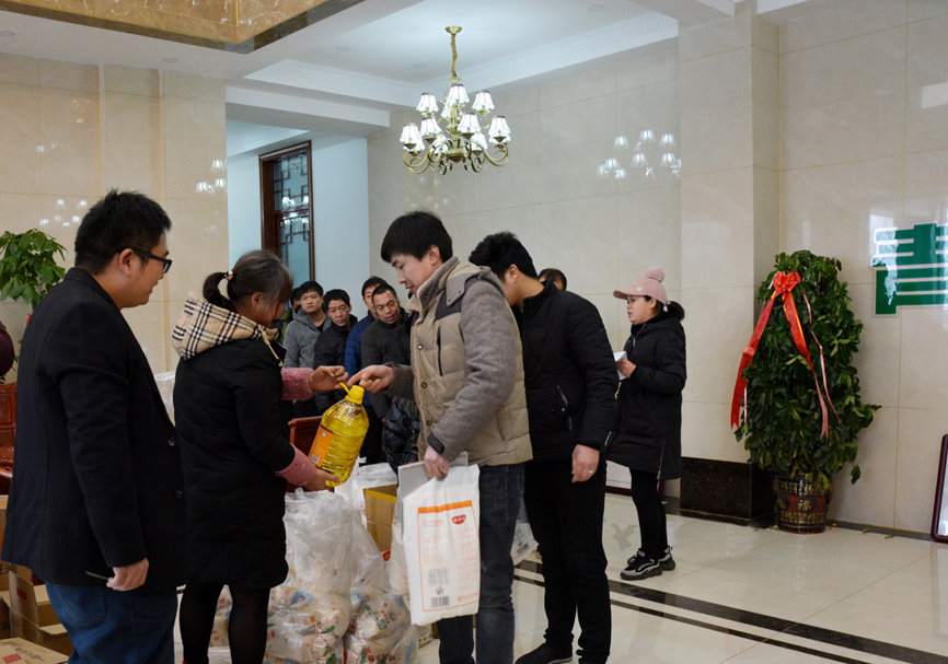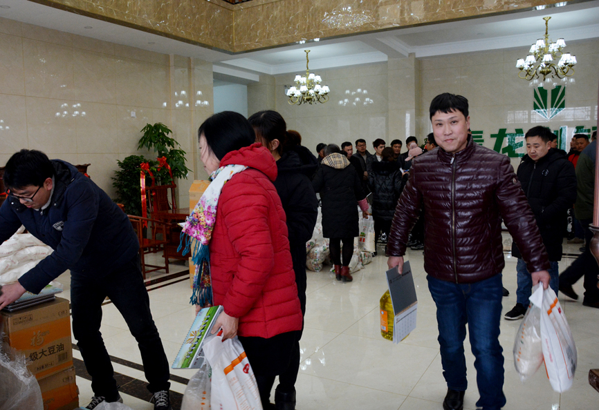 員工會議結(jié)束后,員工們領(lǐng)取公司為大家準(zhǔn)備的福利。