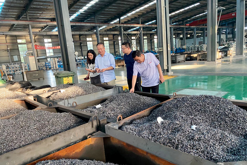 劉思敏博士在馬總及公司工作人員陪同下考察車間生產(chǎn)現(xiàn)場(chǎng)