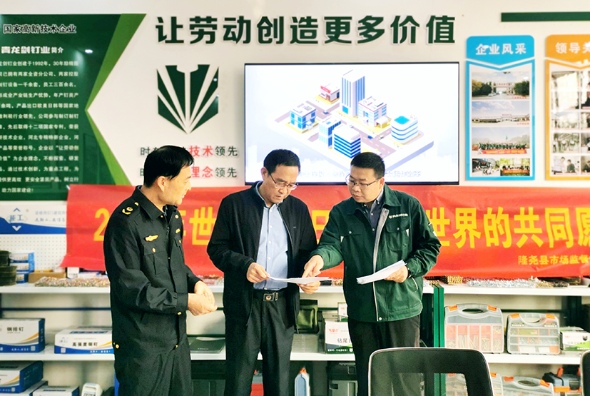 今年10月14日是第54屆世界標(biāo)準(zhǔn)日,主題為“美好世界的共同愿景”。為進(jìn)一步推廣標(biāo)準(zhǔn)化理念,提高標(biāo)準(zhǔn)化意識(shí),提升標(biāo)準(zhǔn)化總體水平,深入推進(jìn)標(biāo)準(zhǔn)化戰(zhàn)略,10月12日,隆堯縣市場(chǎng)監(jiān)督管理局副局長張彥國給青龍劍公司送來釘類產(chǎn)品國家標(biāo)準(zhǔn)。