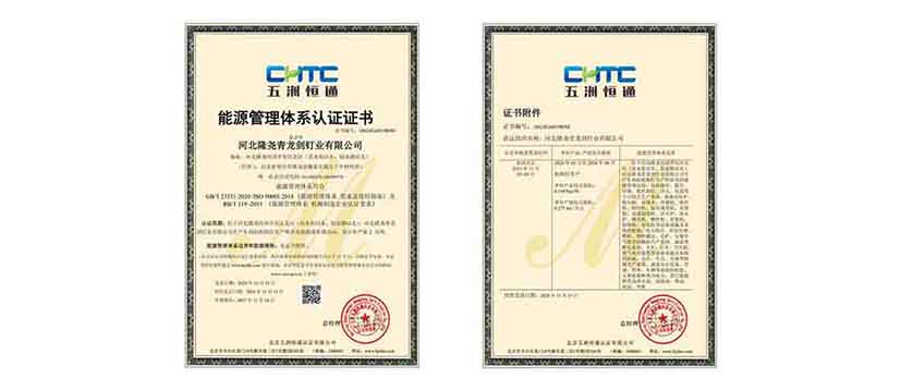 公司始終以“讓勞動創(chuàng)造更多價值”為企業(yè)理念,致力于生產(chǎn)優(yōu)質(zhì)高效的釘類產(chǎn)品。本次通過科學(xué)的管理體系和方法,不斷提升產(chǎn)品質(zhì)量與服務(wù)水平。此次公司通過了多項體系認(rèn)證,標(biāo)志著青龍劍公司一直保持符合國際標(biāo)準(zhǔn)化的管理體系要求,進(jìn)一步鞏固了青龍劍在行業(yè)中的領(lǐng)先地位。