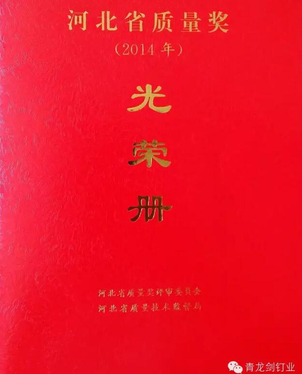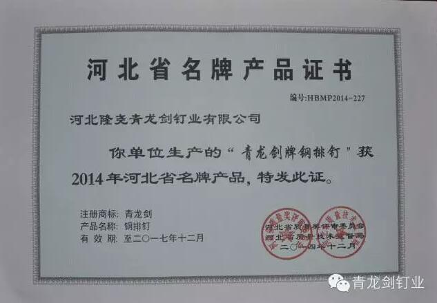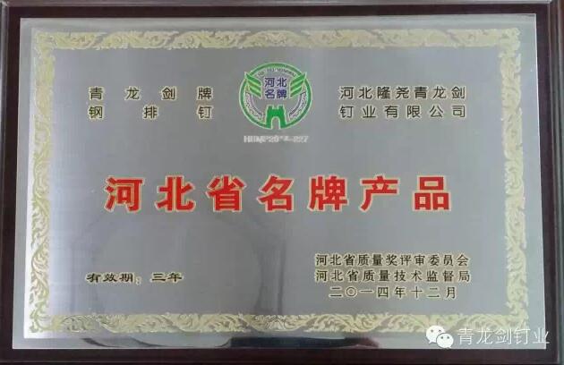 青龍劍釘業(yè)作為業(yè)內(nèi)知名的釘類產(chǎn)品供應(yīng)商,致力于生產(chǎn)優(yōu)質(zhì)高效的釘類產(chǎn)品。此次“河北省名牌產(chǎn)品”榮譽(yù)的獲得,表明青龍劍產(chǎn)品質(zhì)量獲得了充分的認(rèn)可,公司行業(yè)知名度和品牌影響力將得到進(jìn)一步的提升。