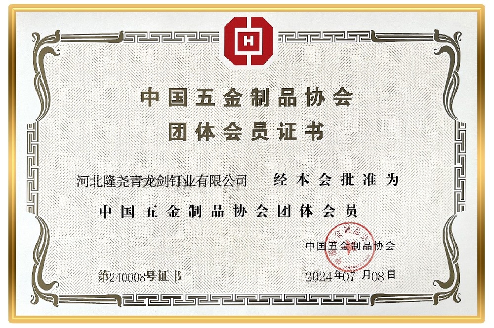 熱烈祝賀青龍劍公司成為中國五金制品協(xié)會團(tuán)體會員,經(jīng)過中國五金協(xié)會嚴(yán)苛審核,青龍劍公司于2024年7月8日榮獲中國五金制品協(xié)會頒發(fā)的團(tuán)體會員證書。青龍劍公司作為行業(yè)領(lǐng)軍企業(yè),以此為契機(jī),以強(qiáng)烈的責(zé)任心,高度的使命感,引領(lǐng)行業(yè)穩(wěn)步前行,努力創(chuàng)建國際先進(jìn)智能制造全產(chǎn)業(yè)鏈工廠。[詳情] 2024-07-19 14:31:59