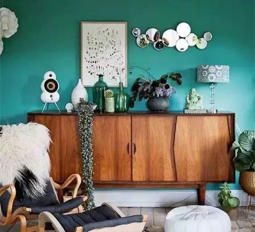 世外桃源綠帶著淡淡的藍(lán)色底調(diào),它復(fù)古而又摩登,能為居住空間注入,綠植般滿滿生命感 。