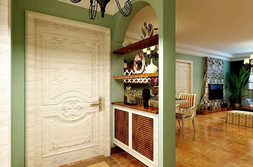 1、玄關(guān)通常與客廳或餐廳相連,但與廳的功能有區(qū)別,所以要通過裝飾設(shè)計進行功能分區(qū)。通常采用的方法主要是吊頂、墻面裝飾、地面的材料和色彩等區(qū)分或用門套、掛落、屏風、柜子等隔斷。玄關(guān)可以是一個封閉、半封閉或全開放的空間,與廳的關(guān)系是連而不直達、隔而不斷。