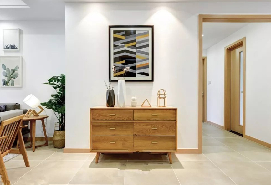 一、墻面:依墻而設(shè)的玄關(guān),其墻面色調(diào)是視線最先接觸點,也是給人的總體色彩印象。不同的色彩帶給人不同的心境,也暗示著室內(nèi)空間的主色調(diào)。玄關(guān)的墻面最好以中性偏暖的色系為宜,能讓人很快從令人疲憊的外界環(huán)境體味到家的溫馨,感覺到家的包容。