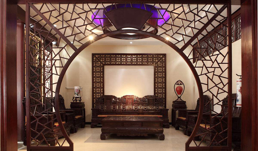 中國傳統(tǒng)居室非常講究空間的層次,喜用隔扇、屏風(fēng)來分割空間。中式屏風(fēng)多用木雕或金漆彩繪,這種屏風(fēng)到舊貨市場買最好,也可定做。隔扇是固定在地上的,就需要定做。隔扇用實木做出結(jié)實的框欄以固定支架,中間用欞子、雕花做成古樸的圖案。如果居室比較開闊,就可以做成一個“月亮門”式的落地罩、隔扇,再配以精雕細刻的嵌花,它將成為居室中最引人注目的景點。